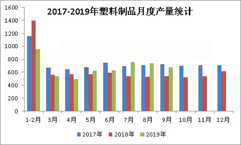????????2019年9月中國塑料制品產(chǎn)量為679.66萬噸,同比增長4.5%;2019年1-9月中國塑料制品產(chǎn)量為5993.61萬噸,同比增長4.1%。第三季度塑料制品產(chǎn)量有所增加。但是近幾天塑料制品總量增加速度放緩,2015年以來增長率僅僅維持在1%-3%。需求量增長速度遠(yuǎn)不及供應(yīng)。