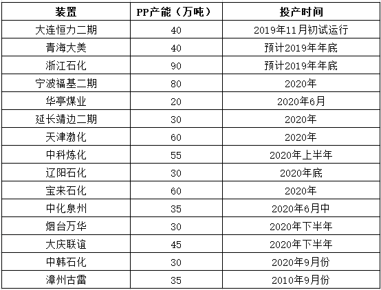 ????????據(jù)了解,目前大連恒力二期聚丙烯裝置預(yù)計(jì)下個月試運(yùn)行,青海大美、浙江石化等裝置年底前或?qū)⑼懂a(chǎn)。明年投產(chǎn)熱情依舊,寧波?;?、華庭煤業(yè)、天津渤化、中科煉化等十幾套裝置產(chǎn)能集中釋放,可以說未來供應(yīng)壓力山大。