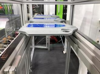 ????????據(jù)伊之密董事副總經(jīng)理、注塑機(jī)事業(yè)部總經(jīng)理張濤介紹,此次展示的伊之密ReactPro聚氨酯模內(nèi)噴涂成型工藝,其成型周期、品質(zhì)和更換顏色的時(shí)間,較CHINAPLAS 2019 上的展示有所提升,是聚氨酯模內(nèi)噴涂成型工藝的升級(jí)。