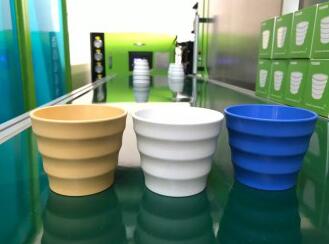 ????????伊之密DCIM在線配混直接注塑成型方案,直擊“循環(huán)經(jīng)濟(jì)”熱門話題,現(xiàn)場生產(chǎn)可生物降解塑料咖啡杯。