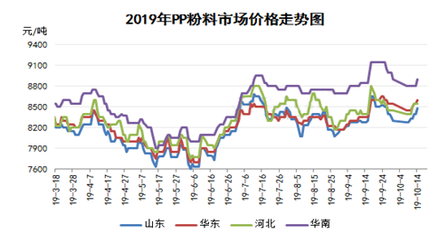 ????????節(jié)后歸來,粉料雖調漲幅度一直不太明顯,但從趨勢圖看反彈跡象已來臨,其主要原因一是丙烯小漲提振粉料市場;二是前期受國慶影響的塑編工廠開工逐漸回歸正常,此外市場仍處相對旺季階段,市場放量增加;三是粉料商家?guī)齑鎵毫簾o,一定程度上為粉料的調漲起到了推波助瀾的作用;四是期貨的小幅走高也為粉料現(xiàn)貨的上行之路帶來助力。