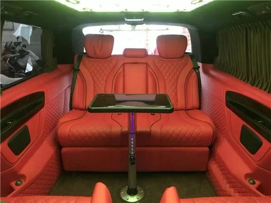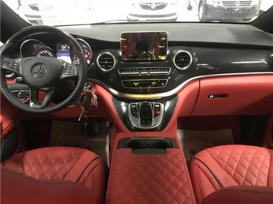 ????????又比如,以下這款2019款奔馳V250也在內(nèi)飾上彰顯創(chuàng)新個性潮流。正副駕座的后背上,不只是配備了折疊小桌板,更是添加了兩個獨立Ipad;后電動窗簾系統(tǒng),搭配淺色的窗簾和其他內(nèi)飾裝飾,燈光照明,氛圍燈飾環(huán)繞,營造自然舒適的駕乘環(huán)境。