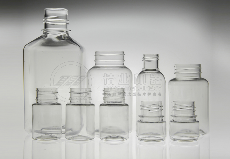 ????????該機(jī)型采用三工位結(jié)構(gòu),即第一工位注射瓶坯,第二工位拉伸吹瓶,第三工位脫瓶,其優(yōu)勢(shì)在于管坯注塑成型后,利用自身所保留的熱量,直接進(jìn)行拉伸吹塑,避免了管坯先要冷卻,損失熱量,然后再加溫,能量反復(fù)消耗的缺點(diǎn)。產(chǎn)品只一次成型,沒(méi)有中間轉(zhuǎn)運(yùn)環(huán)節(jié),徹底杜絕管坯相互碰撞的可能性,保證了極高的外觀質(zhì)量。