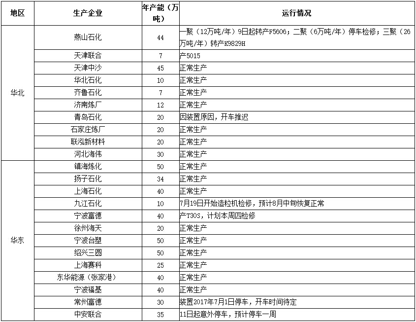 ????????根據對全國塑料市場跟蹤發現,各沿海一帶生產企業仍維持正常開工,