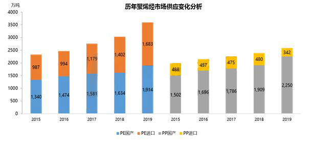 ????????從歷年來進口量對比來看,隨著國內產能的快速擴張,國內供應量逐漸走高,同質化產品競爭加劇,高端料仍依賴進口。頁巖氣革命興起后,中東地區憑借廉價豐富的乙烷資源,大規模擴大乙烯產能,低成本資源逐漸傾銷至國內,導致聚乙烯的進口依存度仍在50%上下。聚丙烯國內擴能較多,擠壓部分進口份額,進口依存度降至20%以下,進口停留在部分高附加值的材料,國內市場話語權較重。同時國內產能的不斷擴大,導致聚烯烴產品已經出現了結構性過剩的現象,市場競爭日趨激烈。PE進口量比重較大也是導致市場庫存遲遲難以消化的原因之一,對比1-6月份進口資源量及進口均價發現成本普遍低于國內價格水平,多數資源已提前進入工廠,擠占部分國產貨市場份額。