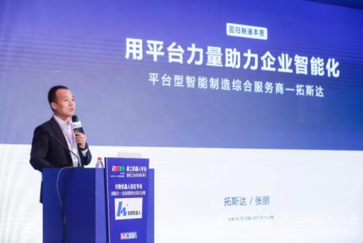 拓斯達機器人事業部總經理——張朋發表了“用平臺力量助力企業智能化”的主題分享。拓斯達將提供適合當下企業智能改造實施的最佳路徑,將以企業需求為核心,提供助力制造產業為對象的整體方案,建立以硬件+服務+數據為底層的結構化平臺,對企業智能化升級進行深度解構。