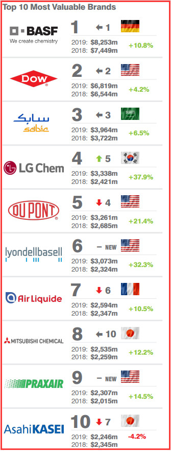 2019全球最有價值十大化學品牌,沙特基礎工業(yè)公