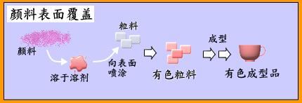 把溶有顏料的涂料噴涂在粒料表面進行覆蓋,可以輕而易舉進行著色,廣泛滿足用戶的需求。但是與混合法相比,顏料的分散性差一些。