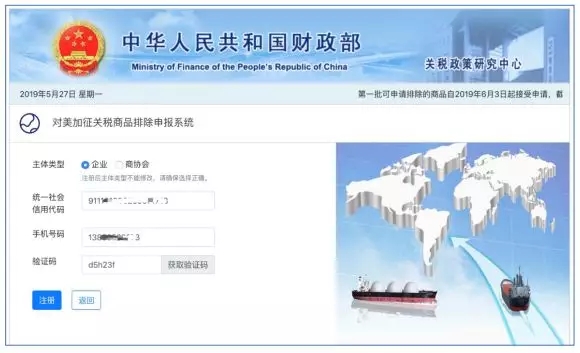 ????????昨日上午,財政部關稅司發布“對美加征關稅商品(第二批)排除申報系統于2019年8月28日開放”的公告,今天起,在華企業及協(商)會可通過財政部關稅政策研究中心網站(https://gszx.mof.gov.cn)注冊、登錄,并開始填寫排除申請。9月2日,排除申報系統正式接受第二批商品排除申請。