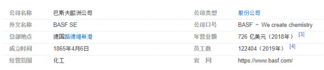 公開資料顯示,巴斯夫成立于1865年,是世界領先的化工公司,總部位于德國萊茵河畔的路德維希港,它是世界上工廠面積最大的化學產品基地。巴斯夫向客戶提供一系列的高性能產品,涵蓋化學品、塑料、特性產品、作物保護產品以及原油和天然氣。一體化(Verbund)基地是公司的優勢所在,生產裝置與技術平臺智能互聯,從而能夠高效地使用資源和發揮專長。在全球各地的研發部門擁有約10,000名員工,是保障巴斯夫創新能力和競爭力的堅實后盾。